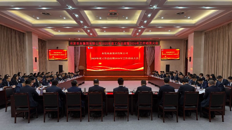 2月28日,水发农业集团召开2025年度工作总结暨2026年工作动员大会,深入学习贯彻上级系列会议精神,全面总结2025年工作成效,安排部署2026年工作任务,动员全体干部职工团结奋进、乘势而上、开创新局,努力为水发集团打造具有全国重要影响力的新型水生态企业集团贡献新的更大力量。水发集团党委委员、副总经理、水发农业集团党委书记、董事长王晓川出席会议并讲话,水发农业集团党委副书记、董事、总经理隋沂作2025年度工作报告,水发农业集团党委副书记朱昌举主持会议。